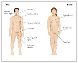Hombres: Aparición de vello facial,en pubis y axilas, cambio de voz, mayor anchura de hombros,crecimiento de órganos sexuales, mayor crecimiento muscular y aumento de fuerza.